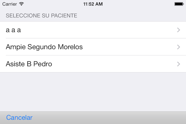 Al tocar Buscar, o Enter en el teclado, del menú de Inicio le aparecerá la lista de pacientes, en la cual toca el nombre del paciente que desea ver.