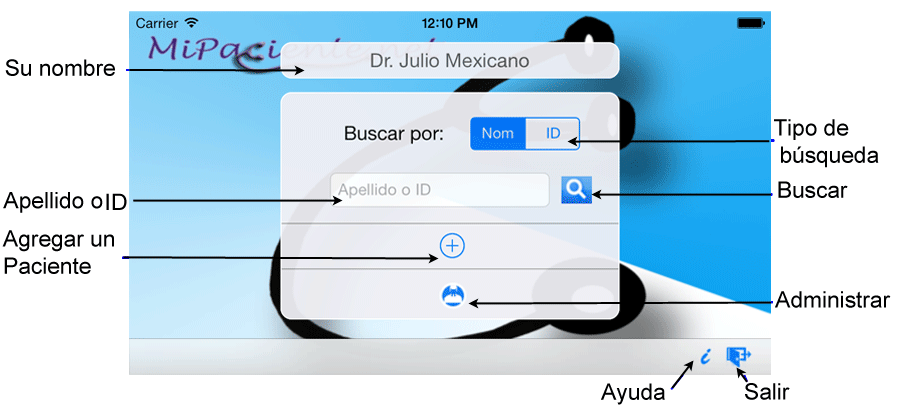del apellido o números de identificación del paciente. Toque Buscar o Enter en el